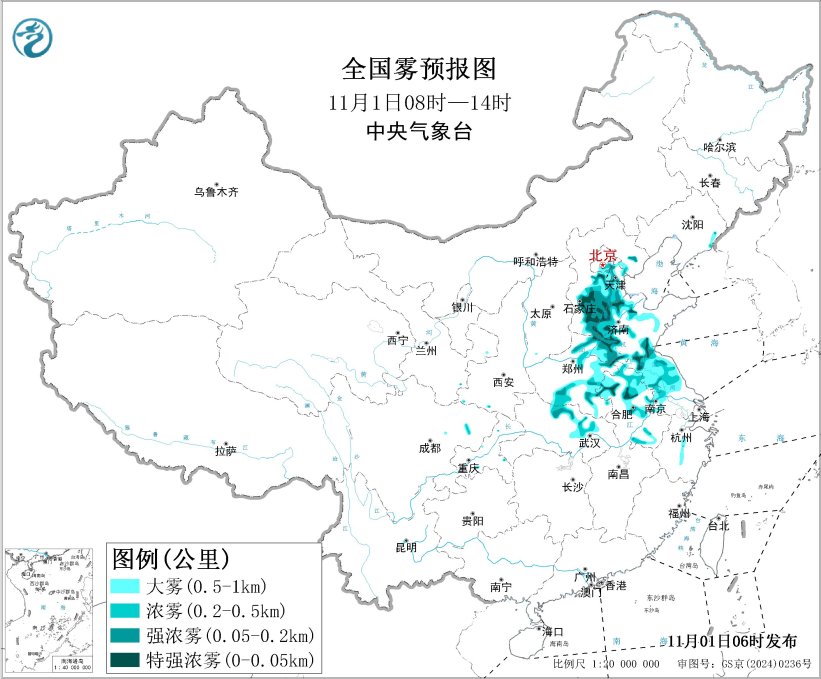 11月1日电 据中心气呼呼象台网站新闻,中心气呼呼象台11月1日06时宣布年夜雾橙色预警:估计,11月1日拂晓至上昼,北京西北部、天津中西部、河北中北部、河北中东部、山西南部战北部、安徽中北部、江苏中北部、湖北北部等天有年夜雾,个中,北京西北部、天津西部、河北中北部、山西南部战北部、河北北部战北部、安徽中北部、江苏中北部、湖北北部等天的一面区域有能睹度矮于500米的浓雾,局天有能睹度矮于50米的特强浓雾。